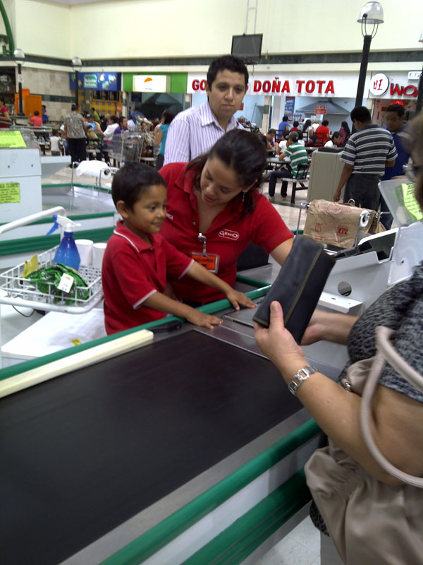 Fue asignado a la Caja 14, realizando con emoción y responsabilidad su trabajo, con el auxilio del personal de Tienda y el de los clientes, que al conocer la historia preferían hacer fila en esa caja que tomar cualquiera otra.