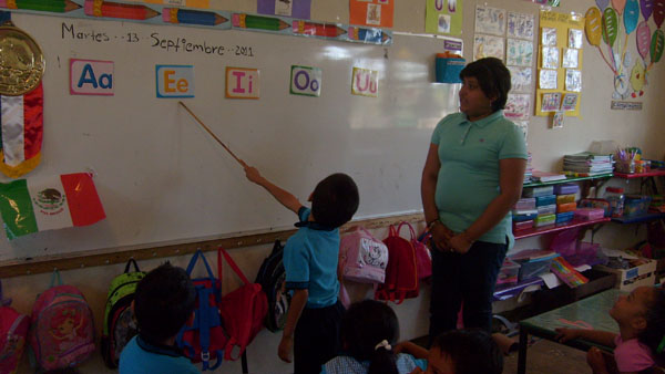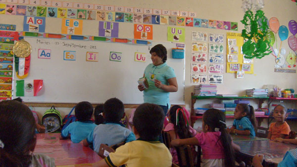 Fue recibida por su directora, la Profra. Blanca Nelia Frasutro , quien la presentó a todo el alumnado y al iniciar las clases la llevó al Salón de Primer Grado con la Maestra Patty.
